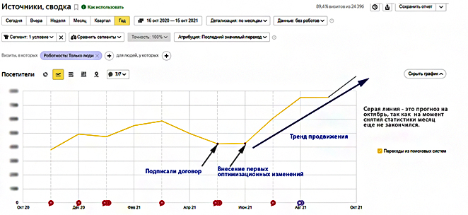 К сожалению, по некасающимся нас причинам связанным с перераспределением бюджета, работы по сео-продвижению решено было приостановить. Часть выполненных работ на перспективу осталась на момент приостановки не внедренной.